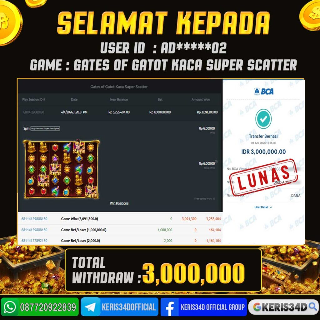 JACKPOT SLOT GACOR MAIN GATES OF GATOT KACA SUPER SCATTER 04 APRIL 2026, Jackpot Slot Gacor, Kemenangan Slot, Bukti Kemenangan Slot, Kemenangan PRAGMATIC PLAY, Menang Slot online, Slot Gacor, Situs Aman Terpercaya, WD Berapapun Pasti DI Bayar Tuntas, Maxwin Slot Online.