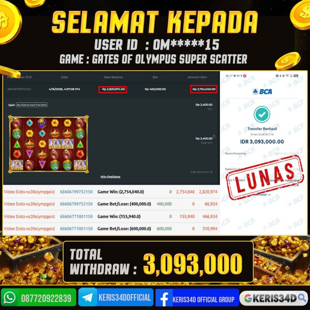 JACKPOT SLOT GACOR MAIN GATES OF OLYMPUS SUPER SCATTER SCATER 16 APRIL 2026, Jackpot Slot Gacor, Kemenangan Slot, Bukti Kemenangan Slot, Kemenangan PRAGMATIC PLAY, Menang Slot online, Slot Gacor, Situs Aman Terpercaya, WD Berapapun Pasti DI Bayar Tuntas, Maxwin Slot Online.
