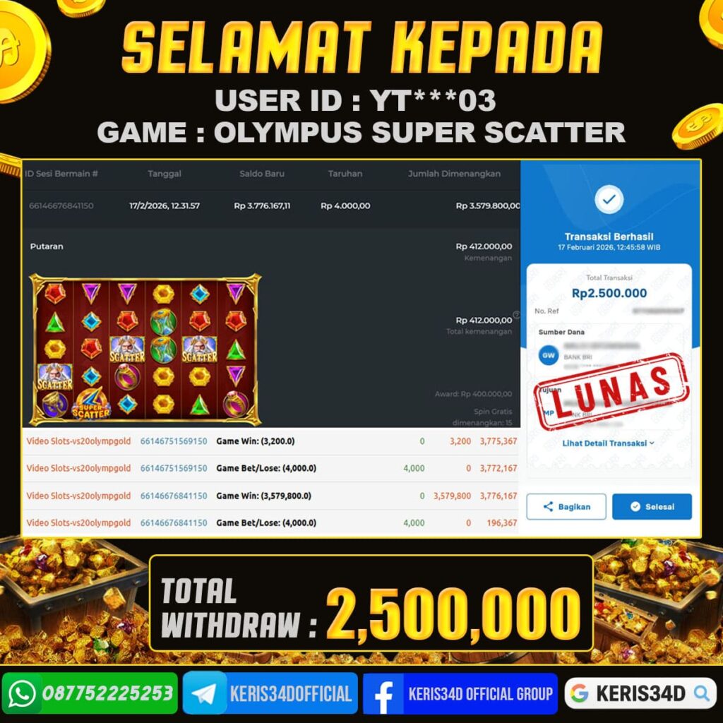 JACKPOT SLOT GACOR MAIN GATES OF OLYMPUS SUPER SCATTERSCATER 17 FEBRUARI 2026, Jackpot Slot Gacor, Kemenangan Slot, Bukti Kemenangan Slot, Kemenangan PRAGMATIC PLAY, Menang Slot online, Slot Gacor, Situs Aman Terpercaya, WD Berapapun Pasti DI Bayar Tuntas, Maxwin Slot Online.
