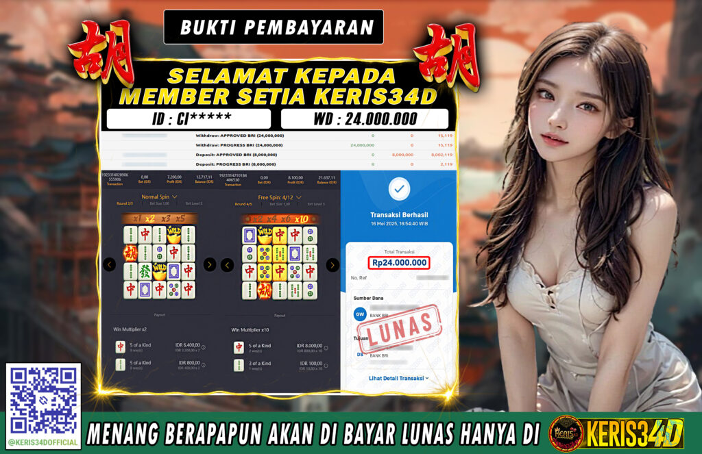 KERIS34D dikenal sebagai situs terpercaya yang selalu menghadirkan pengalaman bermain slot online yang aman, fair, dan berlisensi resmi. Di sini, kami tidak hanya sekadar memberikan janji, tapi bukti nyata berupa slip kemenangan yang dapat Anda lihat secara langsung.