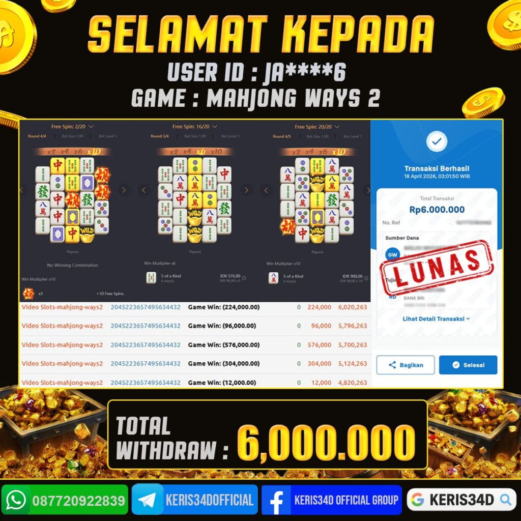 JACKPOT SLOT GACOR MAIN MAHJONG WAYS 2 18 APRIL 2026