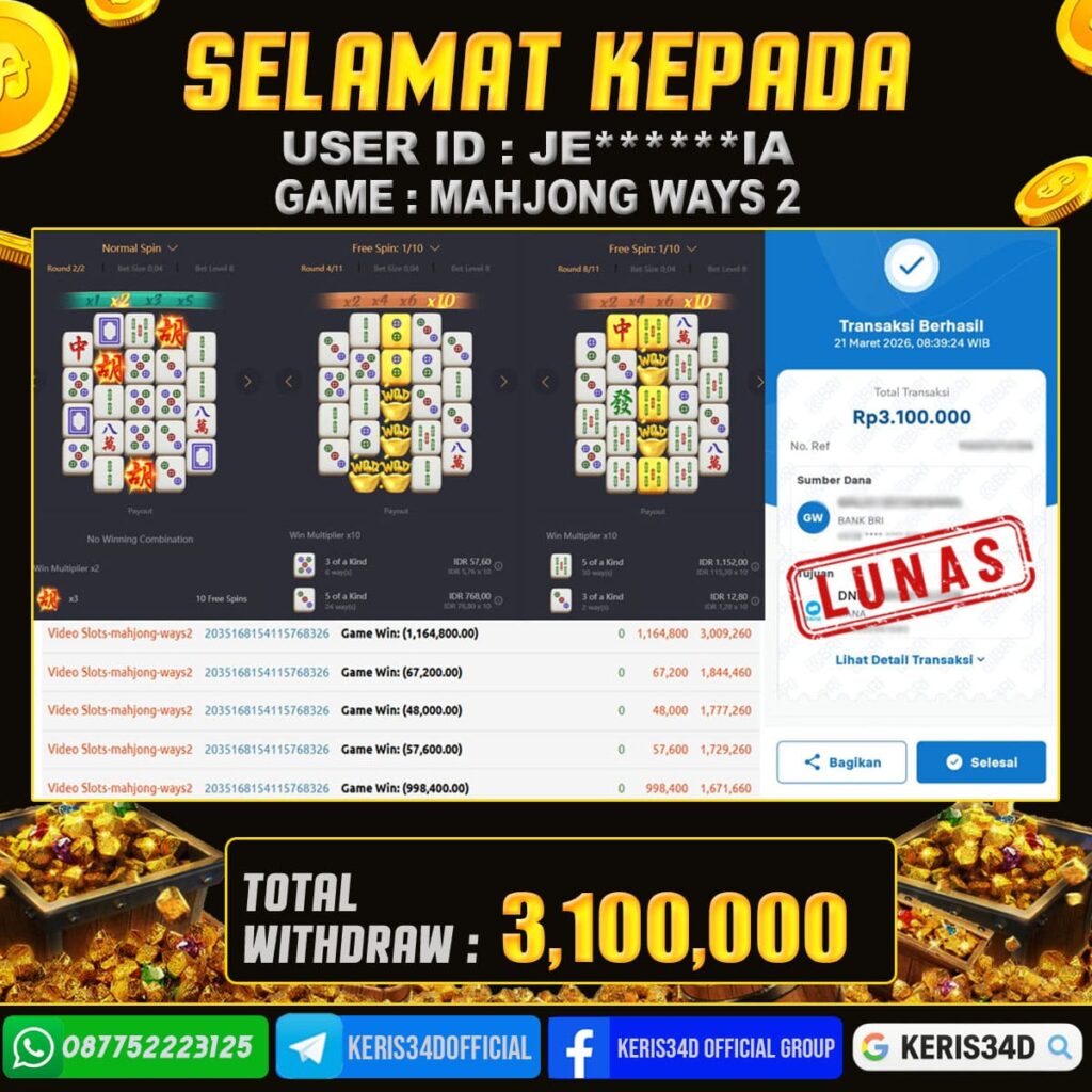 JACKPOT SLOT GACOR MAIN MAHJONG WAYS 2 21 MARET 2026
