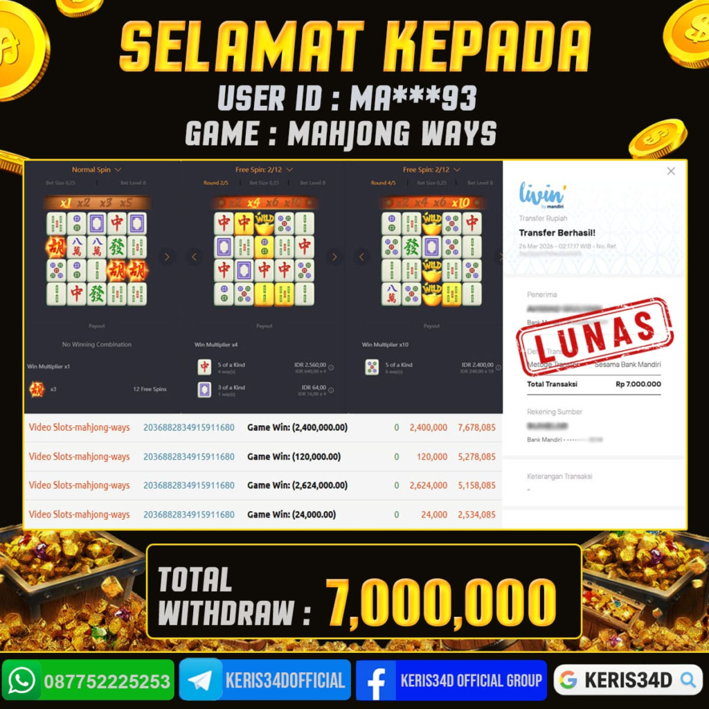 KERIS34D dikenal sebagai situs terpercaya yang selalu menghadirkan pengalaman bermain slot online yang aman, fair, dan berlisensi resmi. Di sini, kami tidak hanya sekadar memberikan janji, tapi bukti nyata berupa slip kemenangan yang dapat Anda lihat secara langsung.