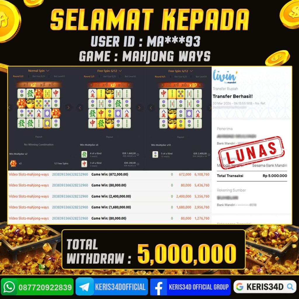 JACKPOT SLOT GACOR MAIN MAHJONG WAYS 30 MARET 2026, Jackpot Slot Gacor, Kemenangan Slot, Bukti Kemenangan Slot, Kemenangan PGSOFT, Menang Slot online, Slot Gacor, Situs Aman Terpercaya, WD Berapapun Pasti DI Bayar Tuntas, Maxwin Slot Online.