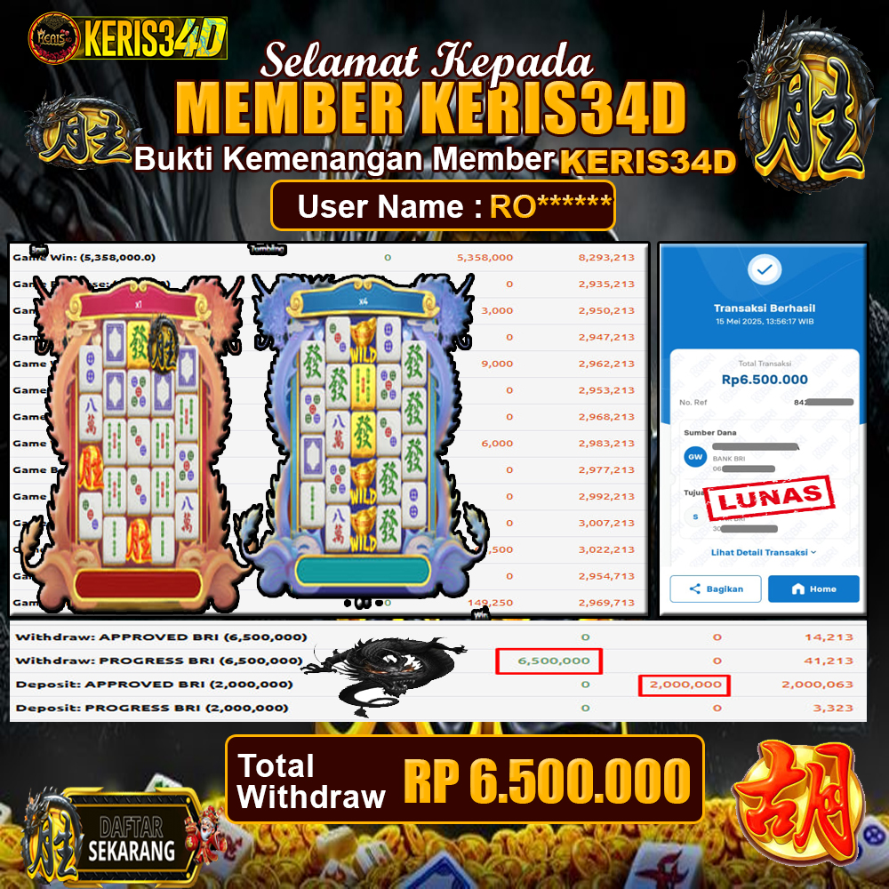 TOTAL KEMENANGAN : Rp. 6.500.000