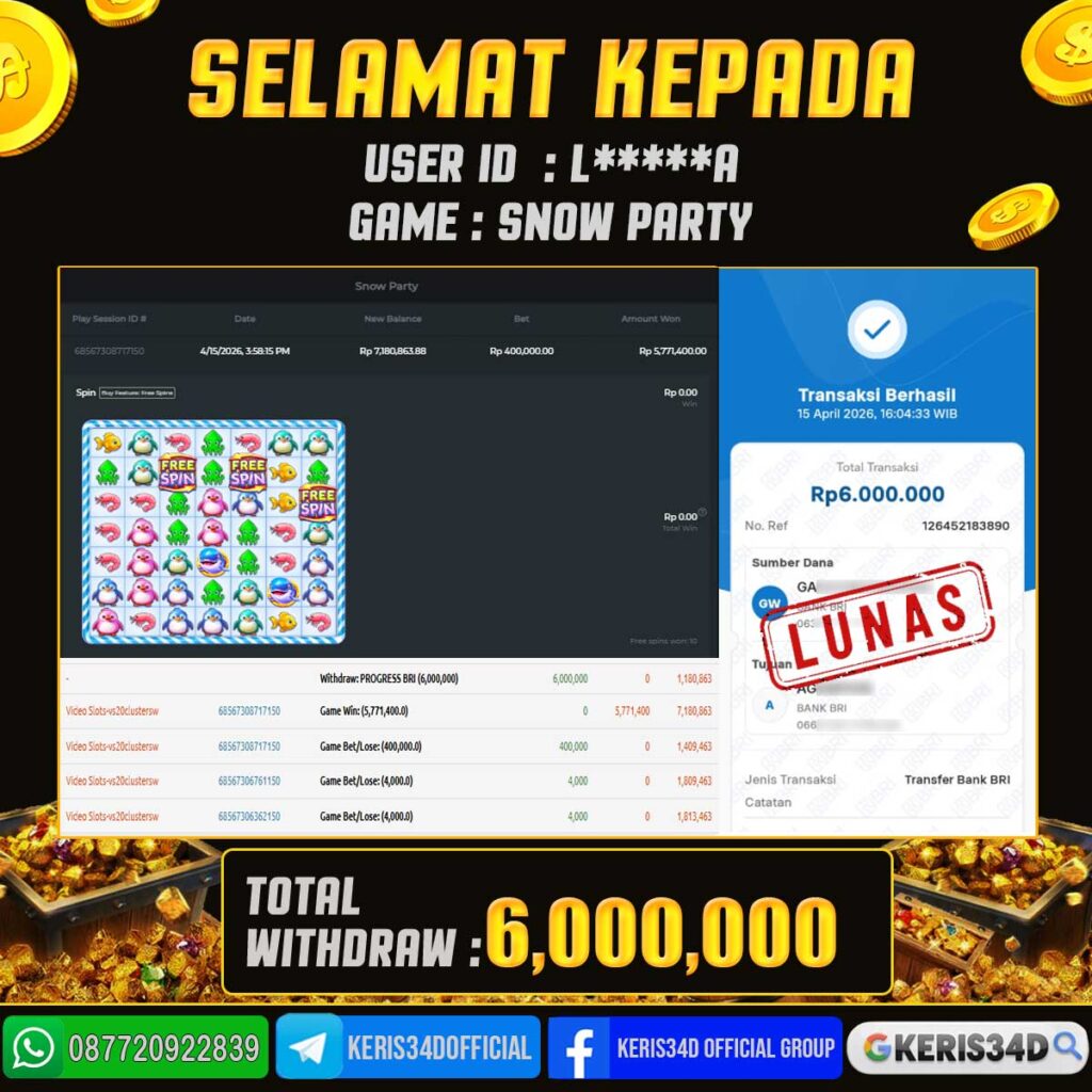 JACKPOT SLOT GACOR MAIN SNOW PARTY 15 APRIL 2026, Jackpot Slot Gacor, Kemenangan Slot, Bukti Kemenangan Slot, Kemenangan PRAGMATIC PLAY, Menang Slot online, Slot Gacor, Situs Aman Terpercaya, WD Berapapun Pasti DI Bayar Tuntas, Maxwin Slot Online.