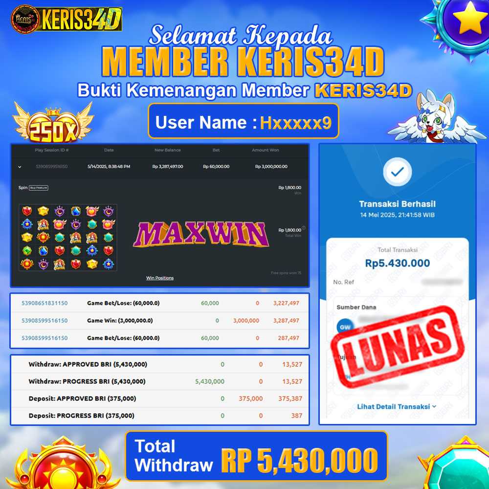 SSetiap hari, member KERIS34D berhasil meraih jackpot besar dari berbagai provider slot ternama yang kami sediakan, seperti Pragmatic Play, Habanero, PG Soft, dan masih banyak lagi. Kami secara rutin menampilkan bukti screenshot atau rekapan kemenangan yang berhasil diraih, mulai dari kemenangan ratusan ribu hingga puluhan juta rupiah. Semua slip kemenangan ini kami hadirkan untuk membuktikan bahwa di KERIS34D, peluang menang itu nyata