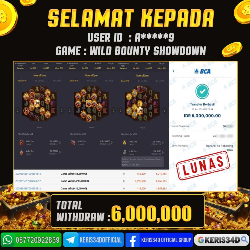 Setiap hari, member KERIS34D berhasil meraih jackpot besar dari berbagai provider slot ternama yang kami sediakan, seperti Pragmatic Play, Habanero, PG Soft, dan masih banyak lagi. Kami secara rutin menampilkan bukti screenshot atau rekapan kemenangan yang berhasil diraih, mulai dari kemenangan ratusan ribu hingga puluhan juta rupiah. Semua slip kemenangan ini kami hadirkan untuk membuktikan bahwa di KERIS34D, peluang menang itu nyata