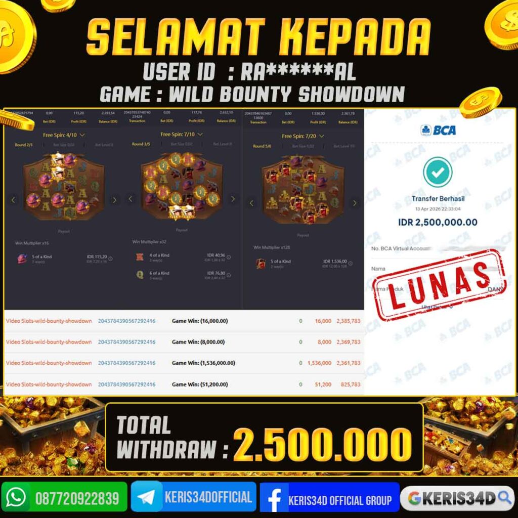 JACKPOT SLOT GACOR MAIN WILD BOUNTY SHOWDOWN 14 APRIL 2026