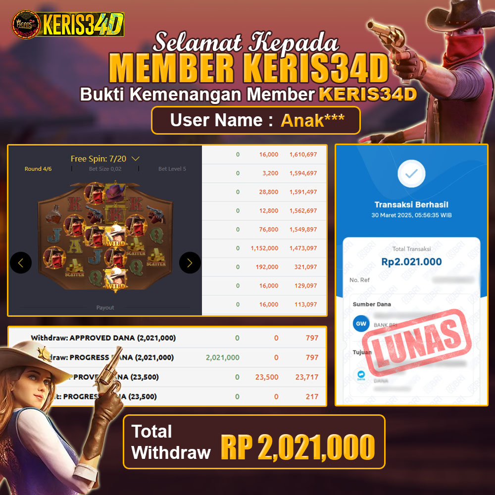 Setiap hari, member KERIS34D berhasil meraih jackpot besar dari berbagai provider slot ternama yang kami sediakan, seperti Pragmatic Play, Habanero, PG Soft, dan masih banyak lagi. Kami secara rutin menampilkan bukti screenshot atau rekapan kemenangan yang berhasil diraih, mulai dari kemenangan ratusan ribu hingga puluhan juta rupiah. Semua slip kemenangan ini kami hadirkan untuk membuktikan bahwa di KERIS34D, peluang menang itu nyata.