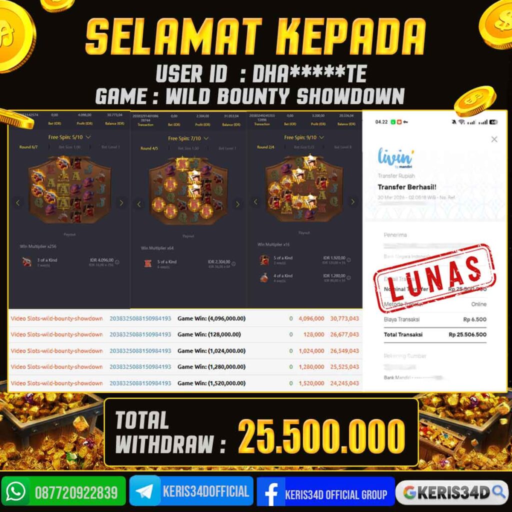 JACKPOT SLOT GACOR MAIN WILD BOUNTY SHOWDOWN 30 MARET 2026