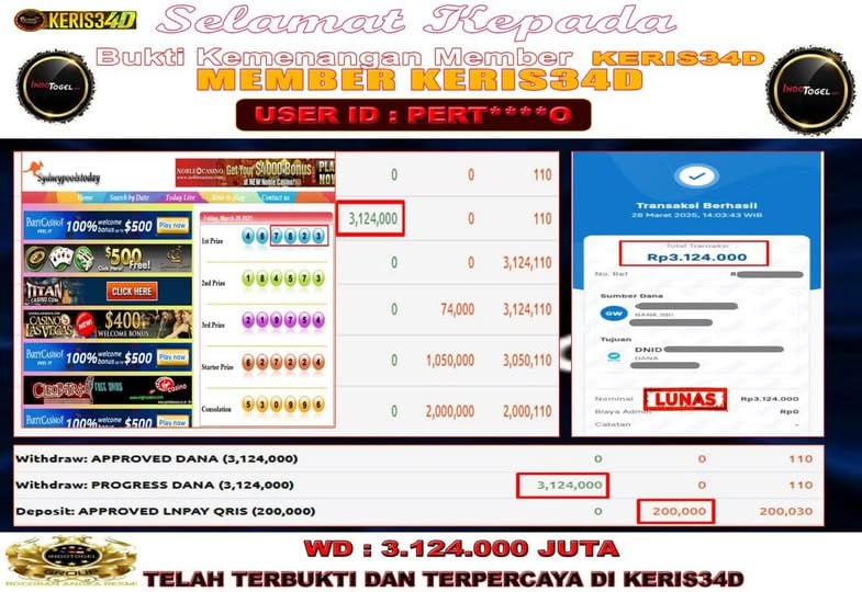 KERIS34D dikenal sebagai situs terpercaya yang selalu menghadirkan pengalaman bermain slot online yang aman, fair, dan berlisensi resmi. Di sini, kami tidak hanya sekadar memberikan janji, tapi bukti nyata berupa slip kemenangan yang dapat Anda lihat secara langsung.